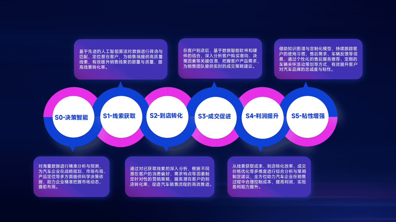通过拓宽潜在客户来源、、、优化线索分配并提高到店转化率,,,,以增强销售效率。。同时,,,,利用线索数据不断优化分析模型,,,,有效提升转化率,,,扩大营销影响力。。。。